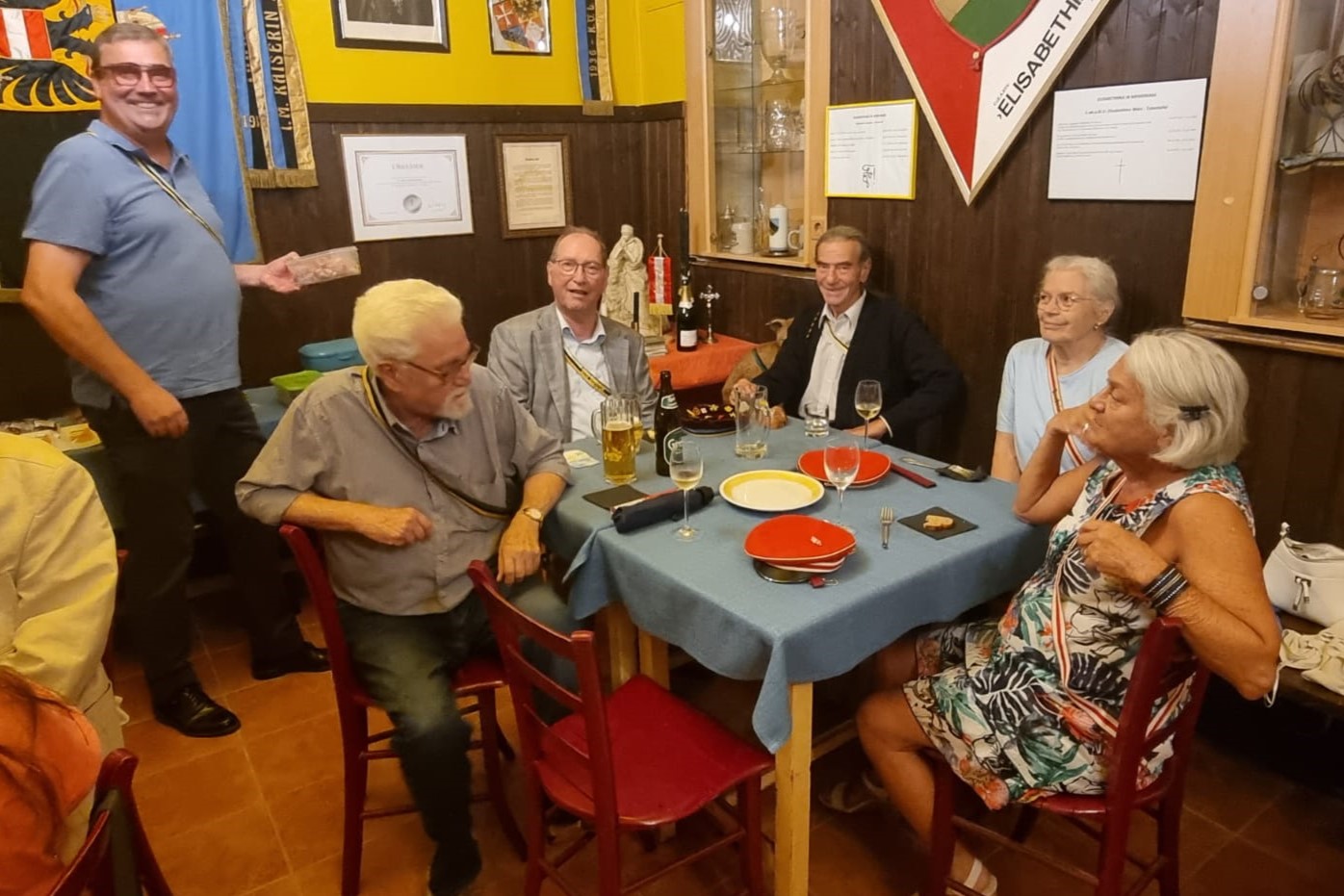 Treue Tegetthoffer, DDr.cer. Raffael, Cd Margarethe sowie Kipferl, Corvinus und Dr.cer. Archimedes in Begleitung ihrer Ehefrauen versammelten sich in Krems zu einem Couleurausflug mit der MS Tegetthoff. Zuvor wurde noch an Land ein kleiner Aperitiv genossen. Am Schiff waren hervorragende Plätze reserviert. Für ein paar Sekunden durfte auch Bbr DDr.cer. Raffael das Steuer übernehmen. Die Fahrt ging durch die Wachau. Da Traumwetter herrschte waren die Sonnwendfeuer und Feuerwerke ungestört zu betrachten. Hagen ![]() ![]() ![]() ![]() ![]() ![]() ![]() ![]() ![]() |
