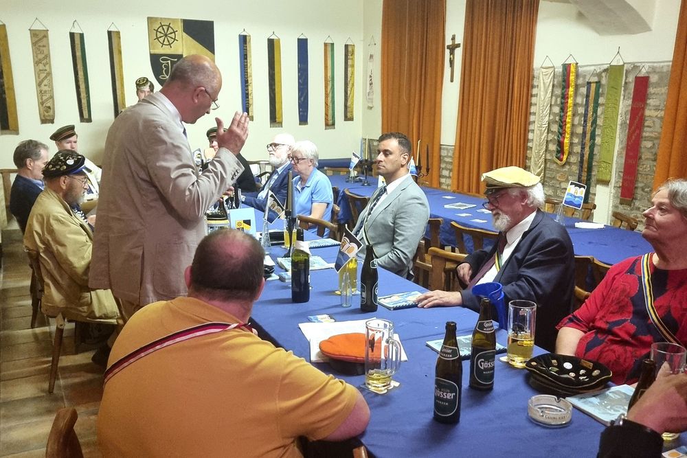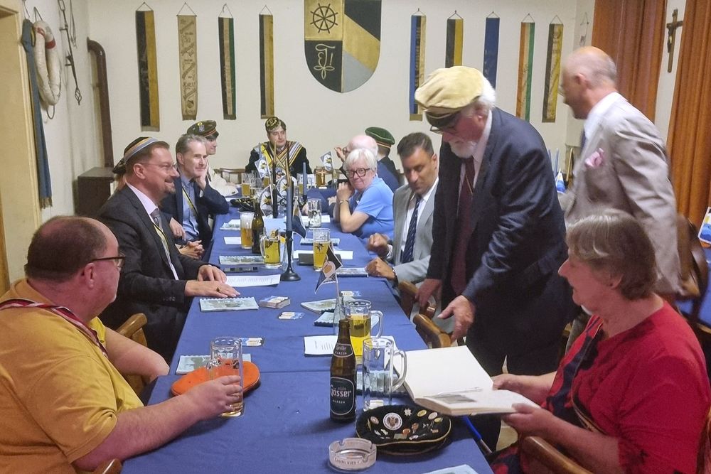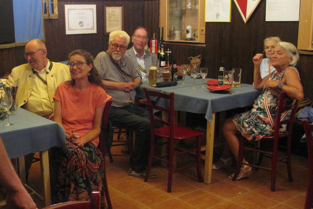Treue Tegetthoffer, DDr.cer. Raffael, Cd Margarethe sowie Kipferl, Corvinus und Dr.cer. Archimedes in Begleitung ihrer Ehefrauen versammelten sich in Krems zu einem Couleurausflug mit der MS Tegetthoff. Zuvor wurde noch an Land ein kleiner Aperitiv genossen. Am Schiff waren hervorragende Plätze reserviert. Für ein paar Sekunden durfte auch Bbr DDr.cer. Raffael das Steuer übernehmen. Die Fahrt ging durch die Wachau. Da Traumwetter herrschte waren die Sonnwendfeuer und Feuerwerke ungestört zu betrachten. Hagen ![]() ![]() ![]() ![]() ![]() ![]() ![]() ![]() ![]() |